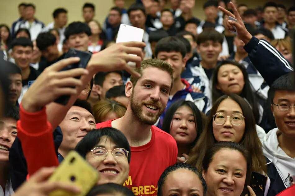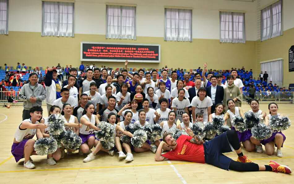 活动最后,在球星与现场学生的互动中拉下了帷幕,同学们积极与到访的嘉宾们拍照留念,球星为学生T恤签名。美好的时光总是这么短暂,只能用一张张照片将它定格。此次活动不仅仅是球星与球迷的见面会,它更是球技的一次交流与学习,NBA队员精湛的球技让球迷们心血澎湃、激动不已、为之欢呼雀跃。相信以此次篮球文化交流活动为契机,通过与美国NBA球星同场竞技、零距离接触、并肩作战,必将把赛场上团结协作、努力拼搏体育的精神,转化为守正奋进、凝心聚力、砥砺奋进的奉献精神,开创我校新时代高水平建设新局面,为努力实现把我校建设成西部一流、国内知名、师范特色鲜明的高水平应用型大学做出新的更大的贡献。