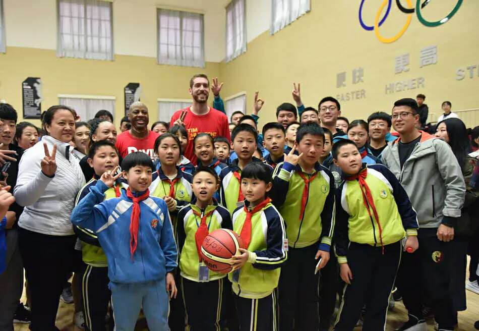 4月2日上午,在甘肃省美育教育促进会的促成下,“爱只因有你”美国NBA球星访问团走进beat365官方网站综合体育馆,与我校大学生进行篮球文化交流活动。