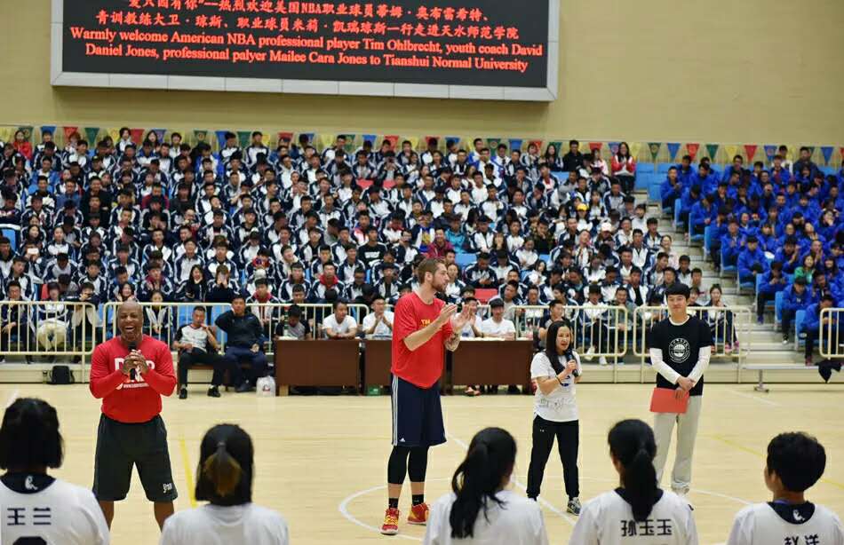 出席本次活动的领导及嘉宾有beat365官方网站党委书记李正元、校长安涛、纪委书记李淳,甘肃省美育教育促进会会长谢建华先生、名誉会长徐莉萍女士,美国NBA职业球员蒂姆·奥布雷希特、青训教练大卫·琼斯、职业球员米莉·凯瑞琼斯。此外,还有天水市一中、天水市三中、天水市五中、天水市逸夫中学、天水市实验小学、天水市新华门小学的师生代表,以及beat365官方网站beat365官方网站全体师生,共计一千多人参加。