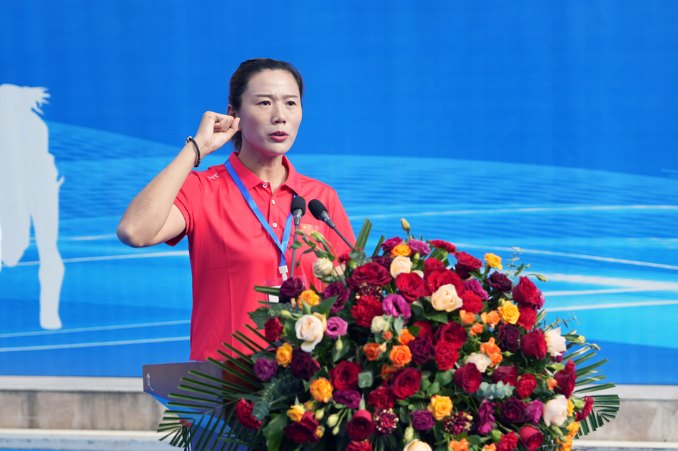 王向晨宣布第十届中国大学生曲棍球锦标赛开幕。