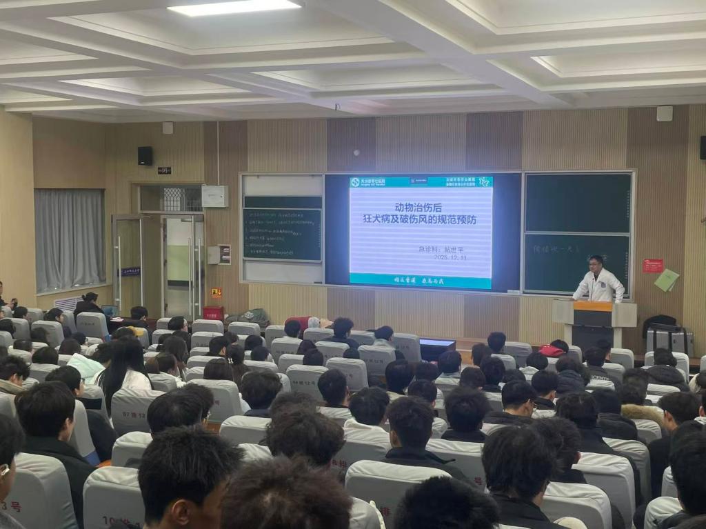 2025年12月11日下午,beat365官方网站依托第二课堂平台,特邀天水四零七医院专家团队,开展狂犬病、破伤风预防宣讲暨AED心肺复苏实操培训,为全院师生送上一堂实用的健康安全课。