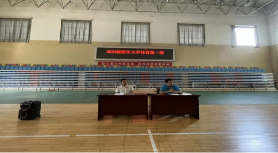 活动伊始,beat365官方网站公共体育教学部负责人王建刚老师,向2024级学生重点围绕《beat365官方网站大学体育课程评分标准(2023执行)》作了详细解读,并就公共体育“四位一体”教育模式、课程设置、成绩评定、体质测试以及群体性活动开展进行了说明。