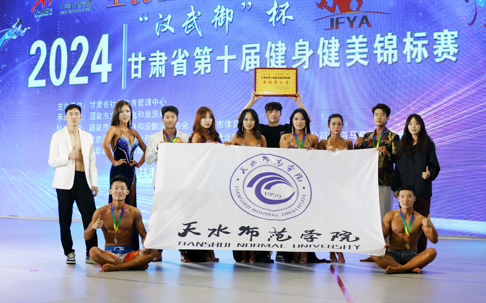 我校共派出12名运动员分别参加男子健体、女子比基尼健身、健身模特以及健身混合双人项目,经过多轮比拼,取得3金、3银、4铜,团体总分全省第三的优异成绩。其中,郗浩同学获得男子健体大学生B组金牌、男子健身模特大学生B组银牌;夏文雪同学获得女子健身模特大学生组A组金牌、混合双人健体铜牌;高佳徽同学获得女子健身模特公开组金牌、女子健身模特大学生组B组银牌;梁娟同学获得女子健身模特大学生组A组银牌;王小龙同学获得男子健体大学生A组铜牌;赵正中同学获得男子健体大学生组B组铜牌;冯继涛同学获得混合双人健体铜牌;刘小英同学获得女子健身模特大学生组A组铜牌。