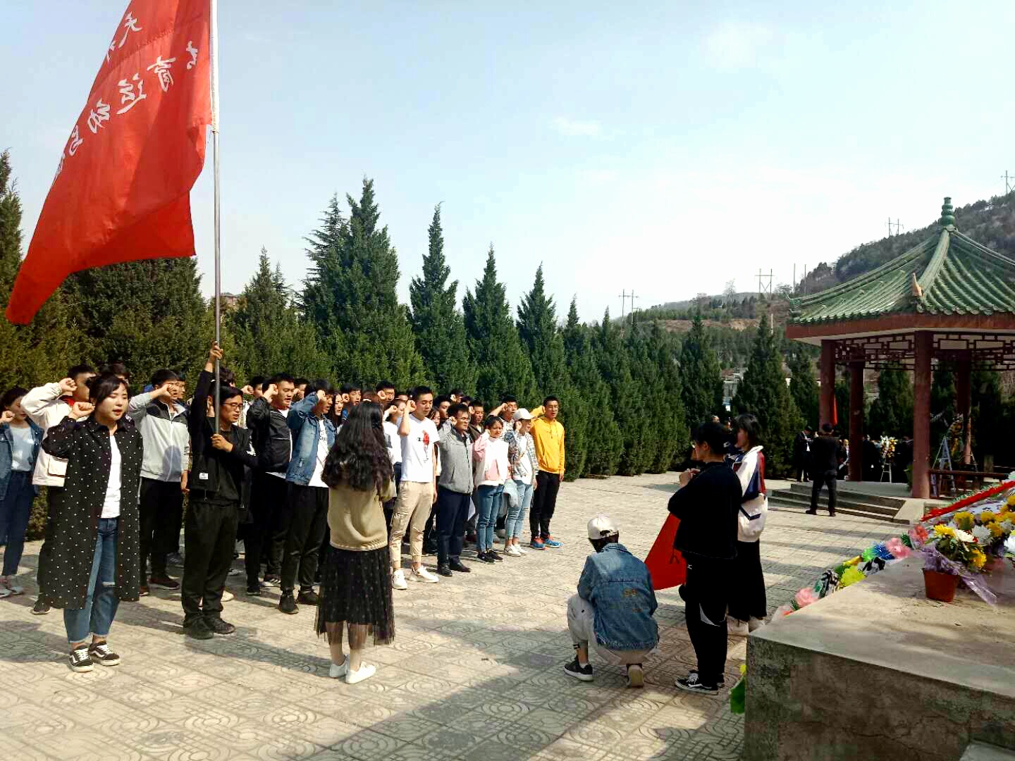 4月4日下午在清明节之际,beat365官方网站党总支组织师生代表前往天水市南山烈士陵园,开展以“扬先烈精神,颂爱国情怀”为主题的祭扫活动。参加祭扫活动的有辅导员张海军、潘婷婷、冉彩荣,学生党员、预备党员、入党积极分子以及学生会成员等50余人,活动由辅导员张海军主持。