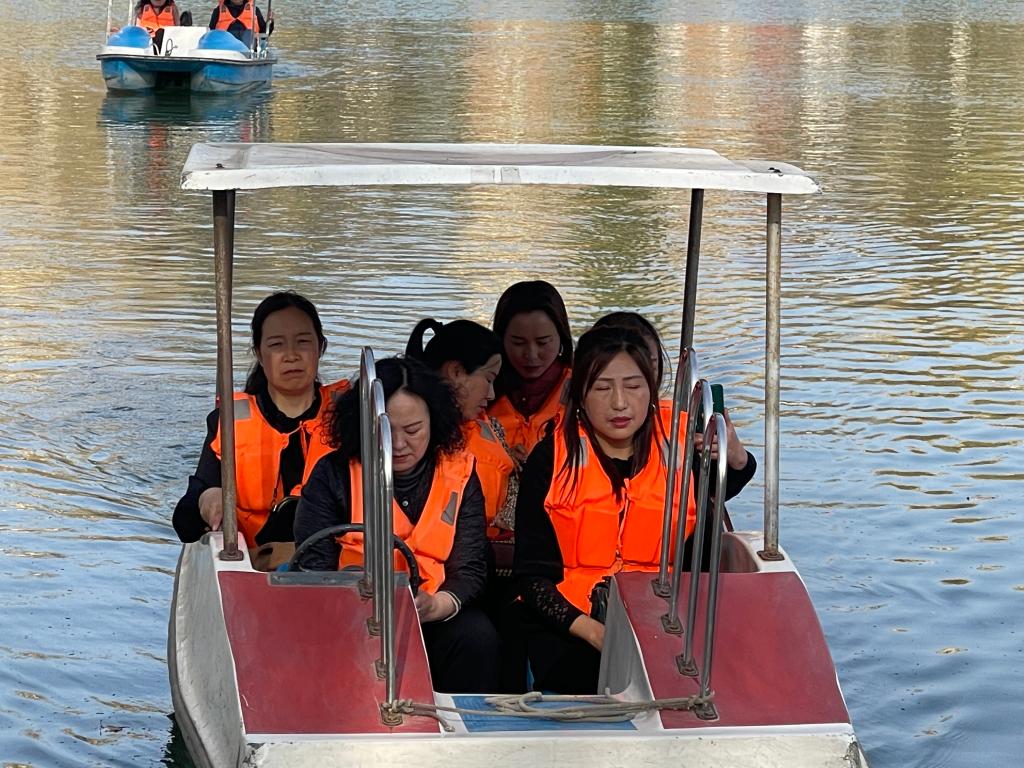 在公园里,组织大家乘坐了游船后,开展了一分钟跳绳、踢毽子以及玩扑克、下跳棋等活动。在各项趣味活动中,大家舒缓减压,放松身心。