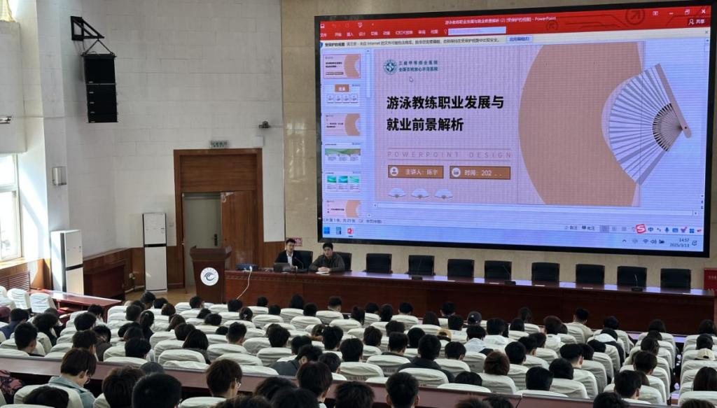 本次宣讲聚焦游泳教练员领域,邀请了天水市宇鹏健身有限公司、秦州青训户外运动俱乐部的企业负责人,围绕“游泳教练员职业发展与就业前景”进行了专题分享,从职业定位、行业动态、人才优势、资格认证等方面展开深入解析。活动现场设置了提问答疑环节,企业负责人就职业路径规划、职场适应策略等问题进行针对性解答。这场持续2小时的宣讲,不仅让毕业生手握“就业地图”,更让低年级学生看清了 “成长路线”。