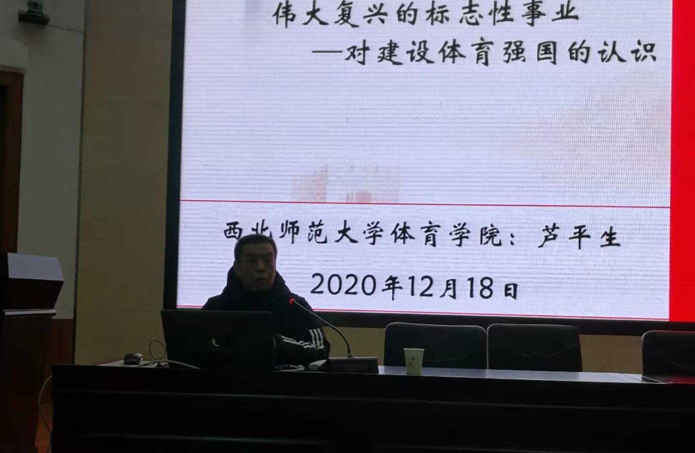 12月18日上午,西北师范大学芦平生教授应应beat365官方网站邀请,在学校二号报告厅作了题为《奋进新时代——让体育成为中华民族伟大复兴标志性事业》的学术报告。