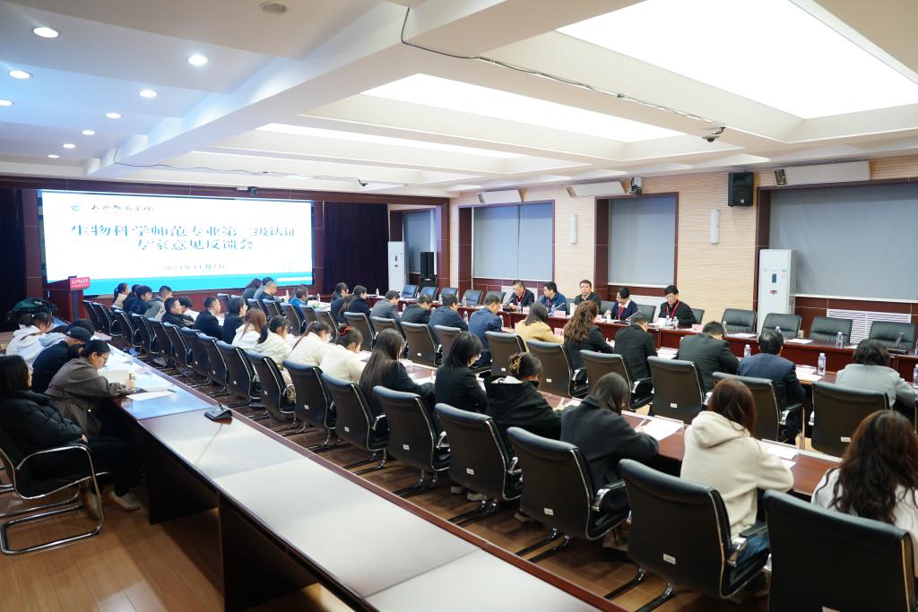 生物科学、历史学、体育教育三个专业负责人分别就自评报告作了补充说明汇报。专家组就人才培养方案设计、质量保障机制和一二课堂贯通融合协同育人提问循证,学校相关职能部门负责人进行了解答。