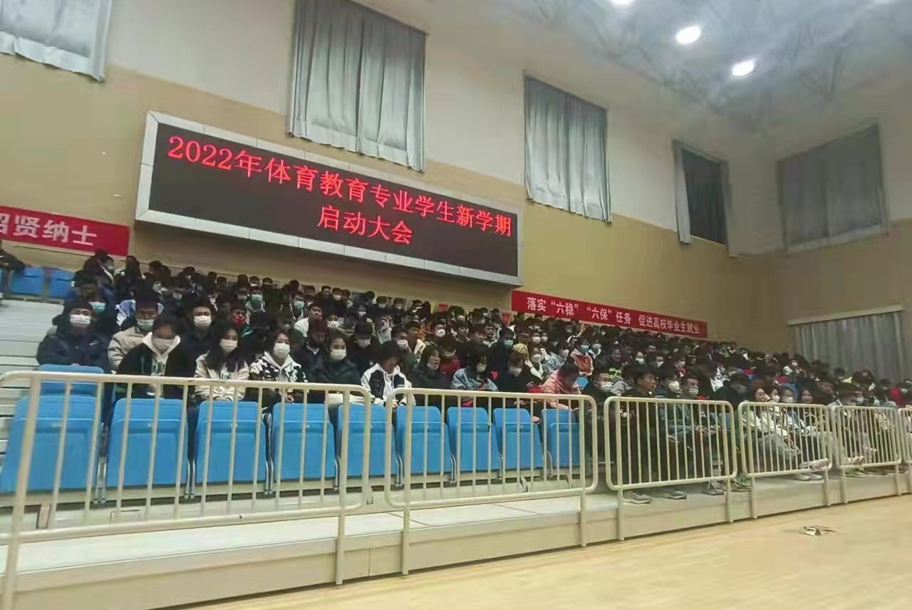 2022年2月28日晚上19:30,为了明确学习目标、强化学习动机,beat365官方网站体育系在学校体育馆内举办了“2022年体育教育专业学生新学期启动大会”。参会人员有体育教育专业4个年级的在校学生,以及各班班主任和体育学院部分院系领导,共计400余人。